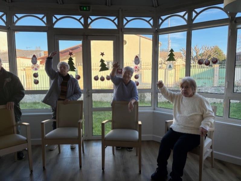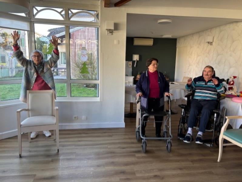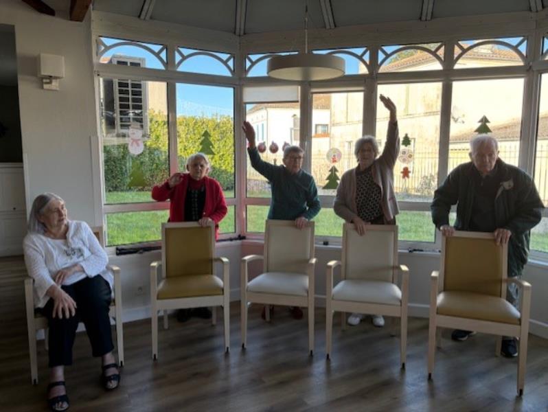 Aujourd'hui, nombreux résidents ont participé à l'atelier. Les exercices de renforcement musculaire étaient faits soit debout soit assis. Nous avons fait aussi de l'équilibre derrière la chaise. Bravo pour cette participation!