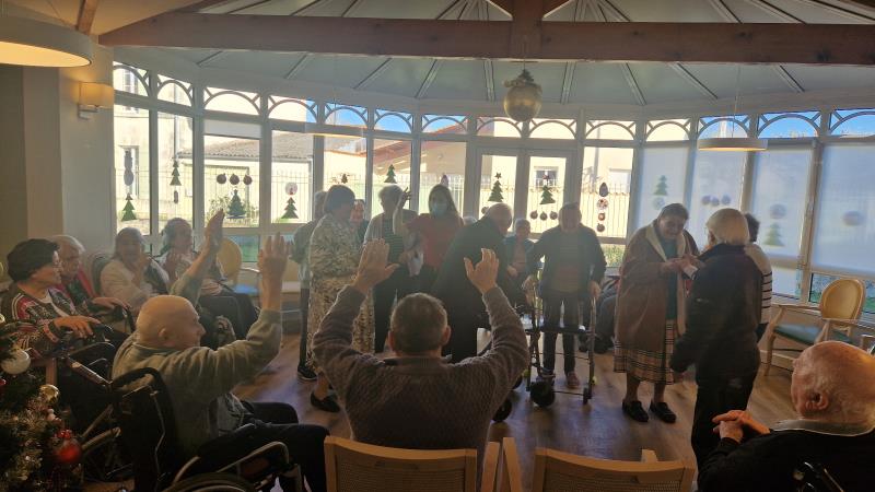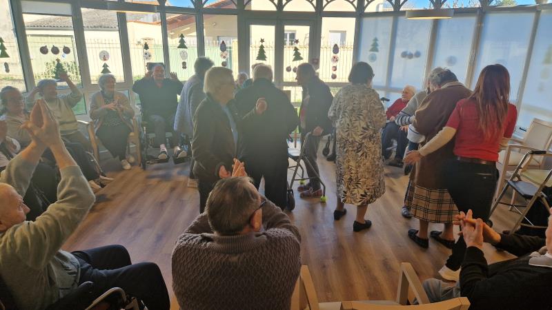 Cathy organise un p'tit bal musette pour le plaisir des résidents.